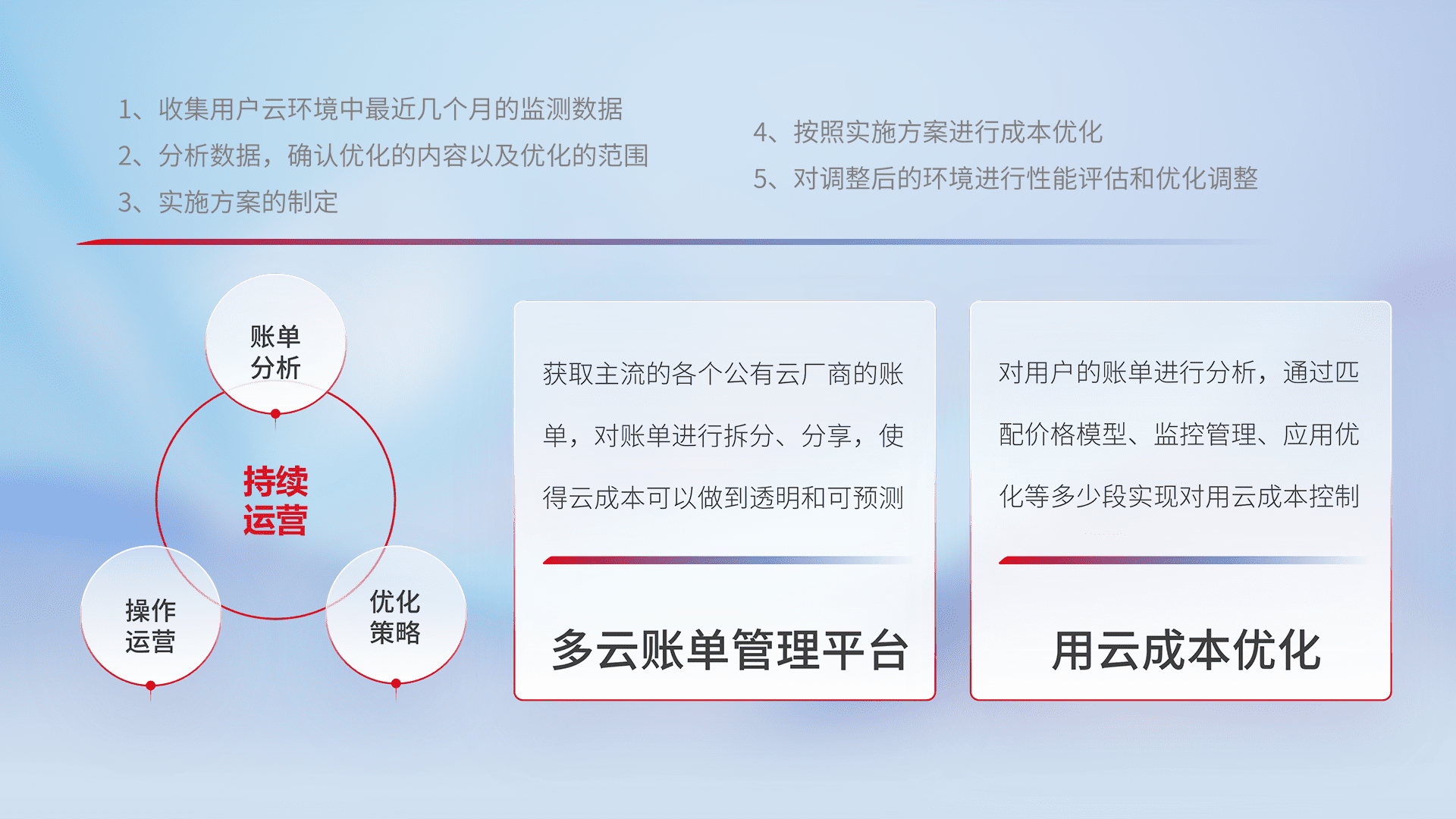 运用智能化工具分析云资源,,提供日常费用可视化工具,,自动账单拆分,,,,成本优化云上费用,,降本增效。。