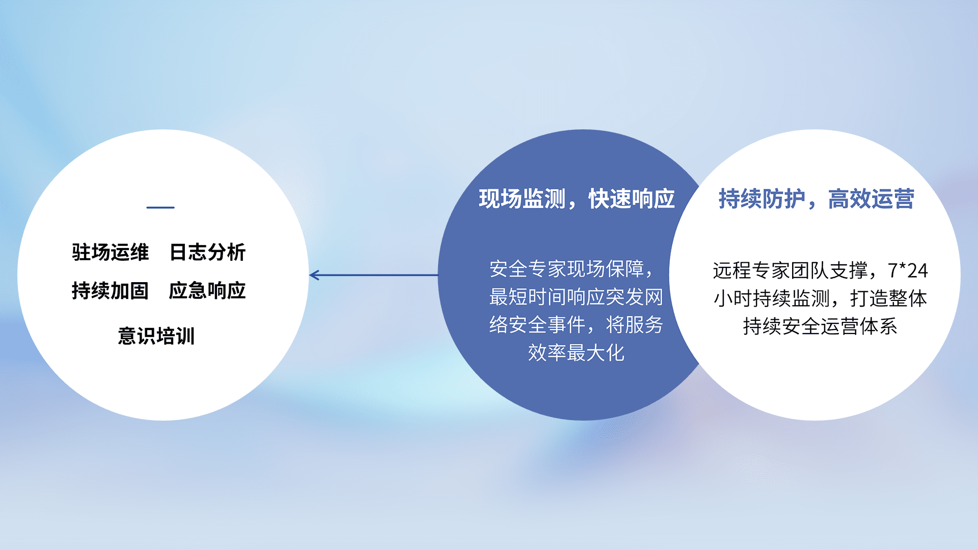 针对客户行业特性,,,提供专属的一站式安全管理服务,,帮助客户全面感知网络空间威胁,,,,通过安全专家的线上、、、、线下防护支持,,实现风险闭环,,,将安全保障常态化,,,为客户打造常态化安全运维运营服务。。。
