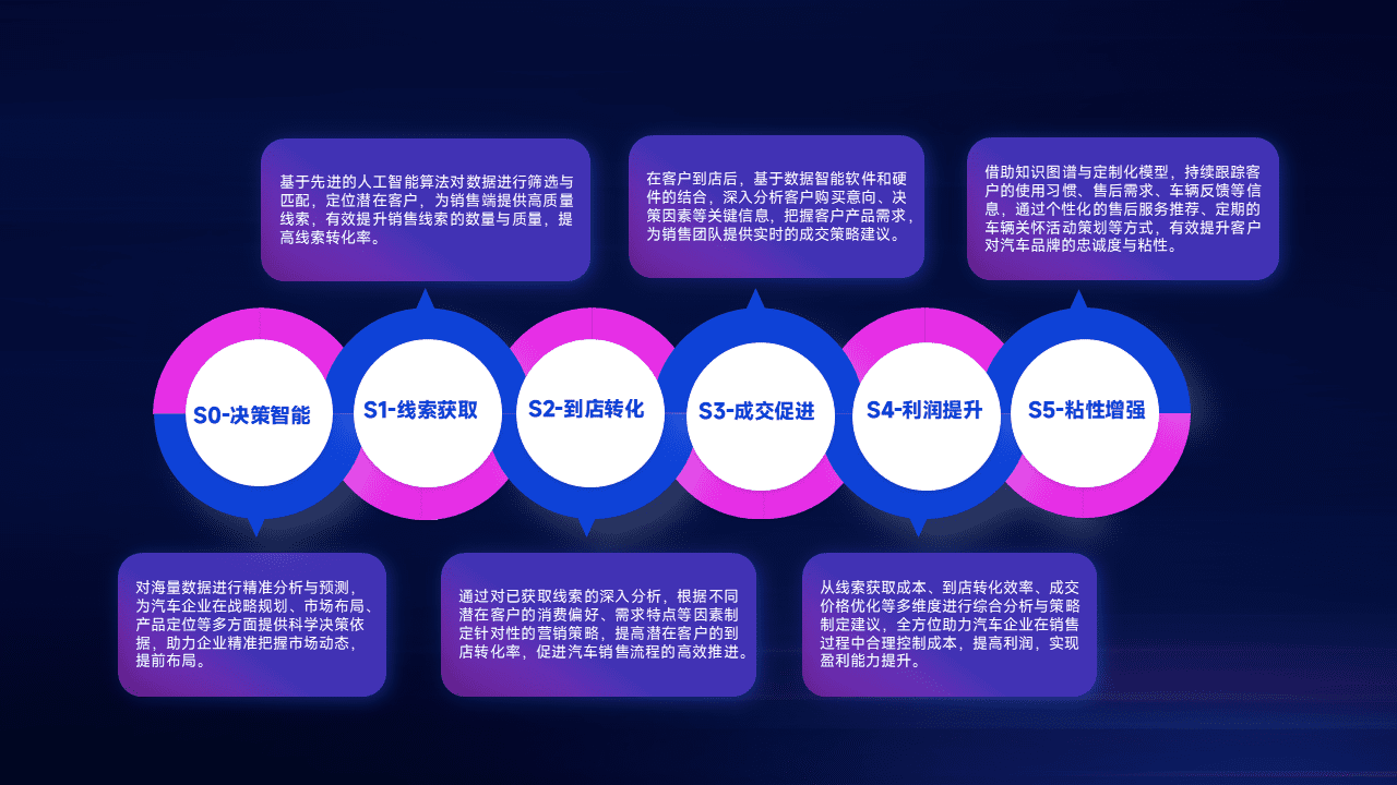 通过拓宽潜在客户来源、、优化线索分配并提高到店转化率,,以增强销售效率。。。同时,,,利用线索数据不断优化分析模型,,,有效提升转化率,,,扩大营销影响力。。。。